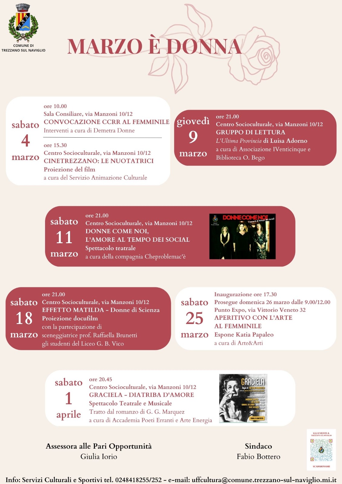È la rassegna “Marzo è donna”, promossa dall’assessorato alle Pari opportunità del Comune di Trezzano sul Naviglio, insieme alle associazioni del territorio, agli studenti del Liceo G. B. Vico, al Servizio di Animazione Culturale e alla Biblioteca comunale O. Bego.