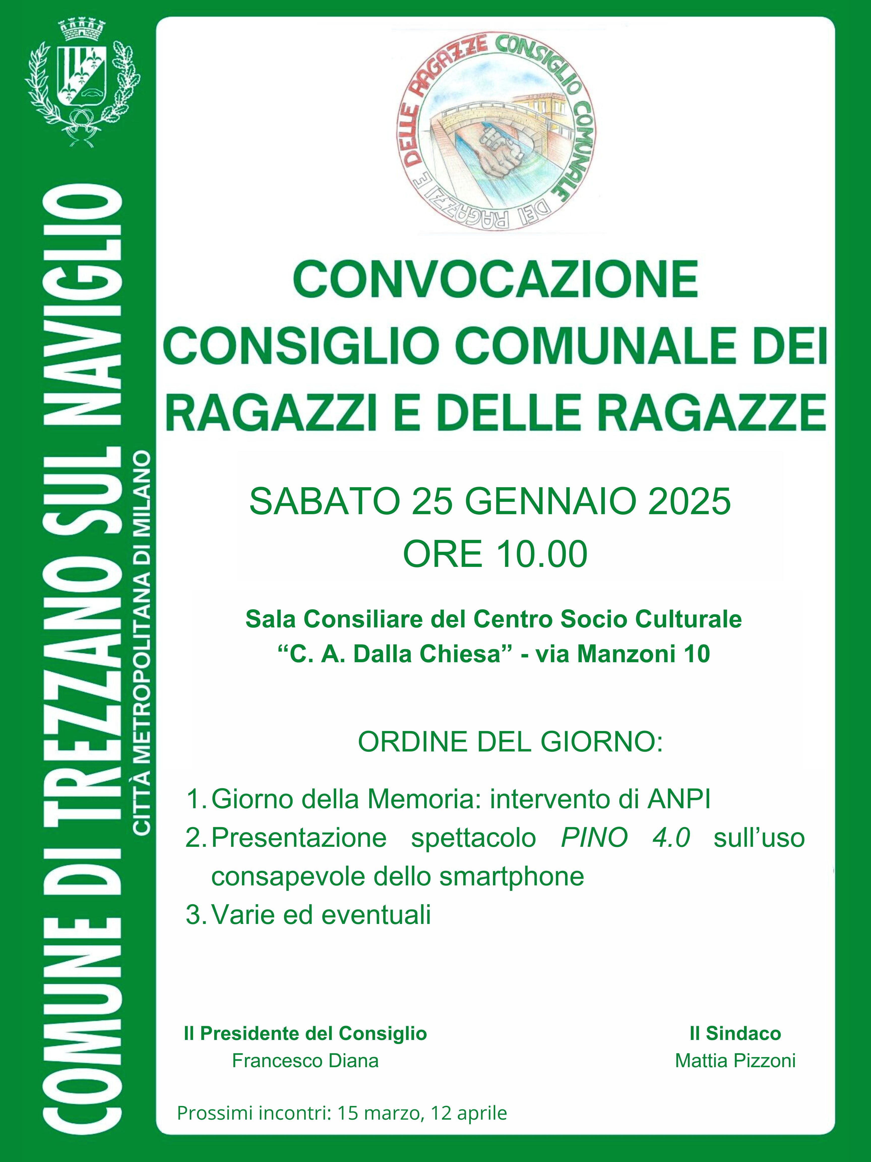 Descrizione Convocazione della seduta del Consiglio Comunale dei Ragazzi e delle Ragazze - sabato 25 gennaio ore 10:00