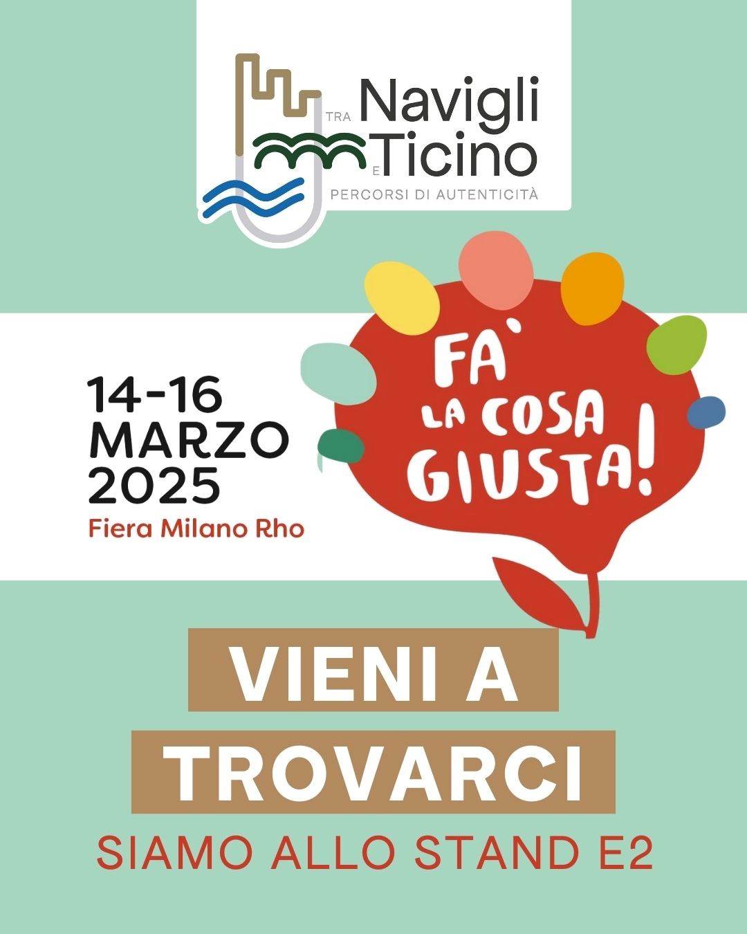 Dal 14 al 16 marzo 2025, il Comune di Trezzano sul Naviglio parteciperà alla fiera "Fa' la cosa giusta!", all'interno dello spazio espositivo di Tra Navigli e Ticino, di cui fa parte. Saremo presenti presso il padiglione 16 allo stand E2 a Fiera Milano Rho per promuovere il nostro territorio e valorizzare le sue eccellenze.