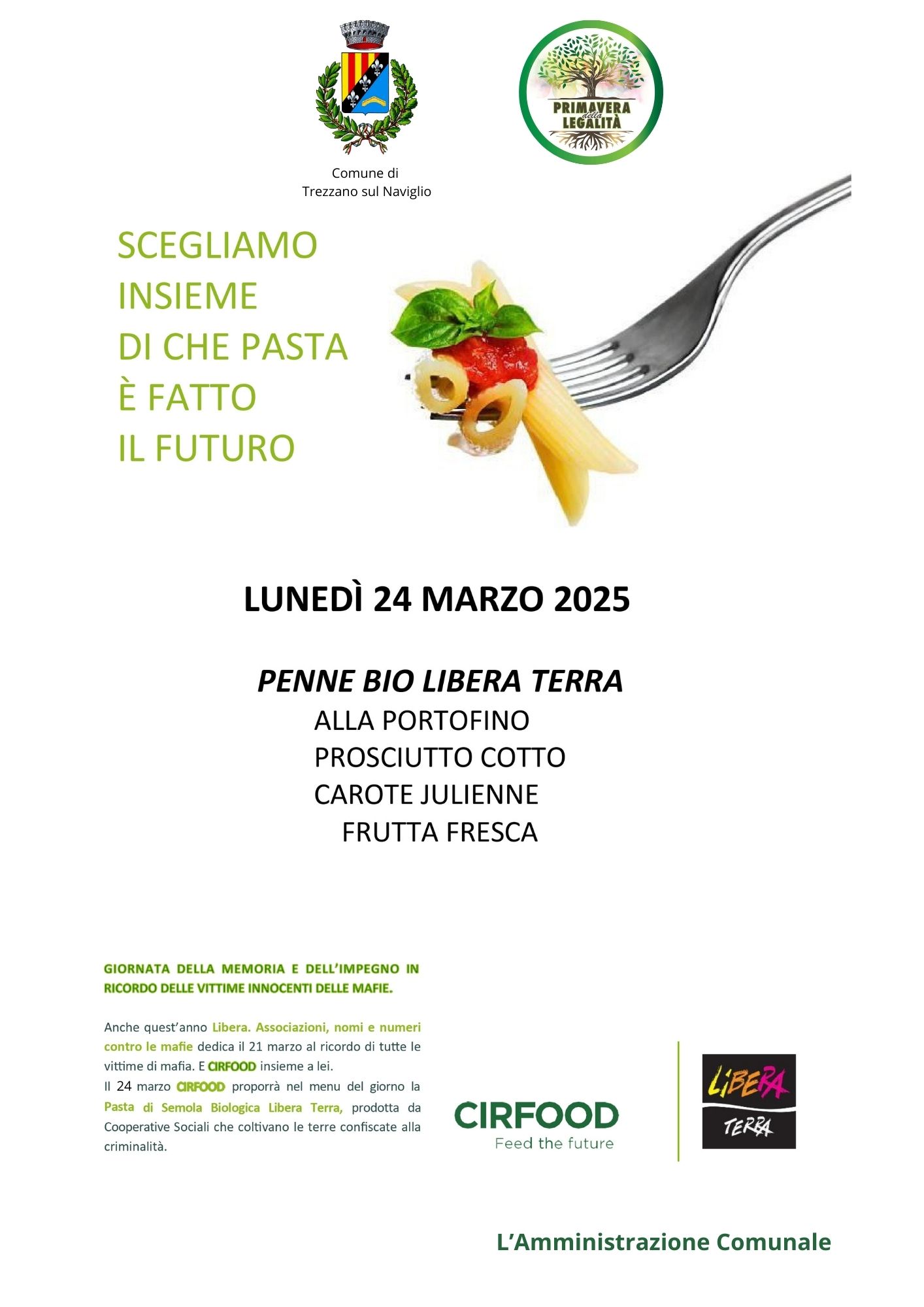 Il 24 marzo CIRFOOD proporrà nel menu del giorno della mensa scolastica la Pasta di Semola Bio Libera Terra, prodotta dalle Cooperative Sociali che coltivano terre confiscate alla criminalità.