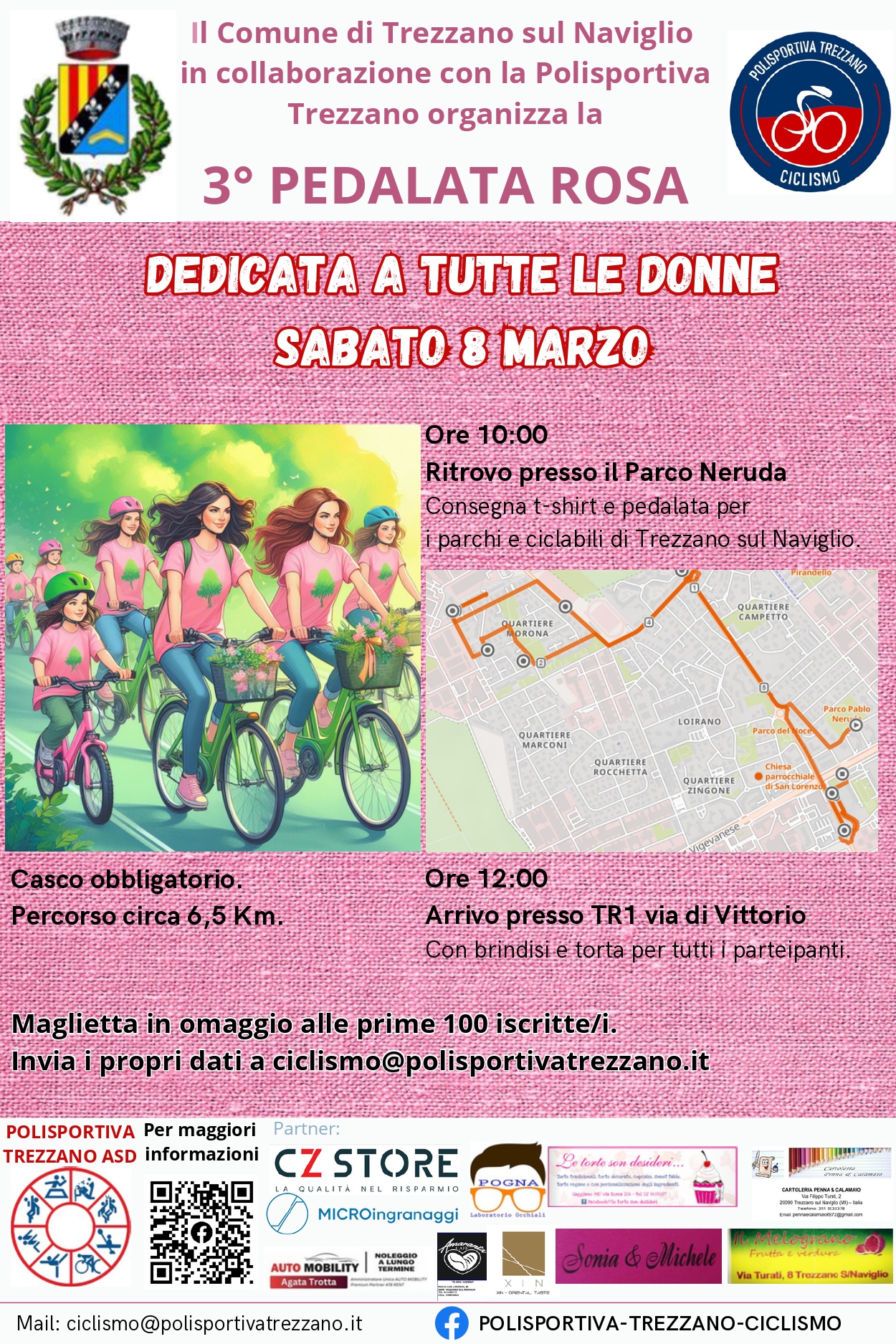 Il Comune di Trezzano sul Naviglio, in collaborazione con la Polisportiva Trezzano, organizza la terza “Pedalata rosa”.