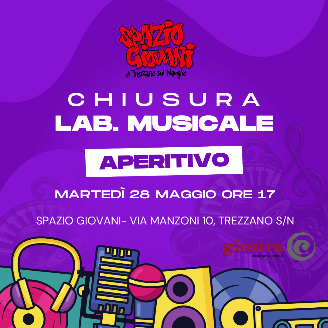 Cos'è Aperitivo per la chiusura del Laboratorio Musicale martedì 28 maggio ore 17.00 presso lo spazio giovani sito in via Manzoni 10, Trezzano s/N