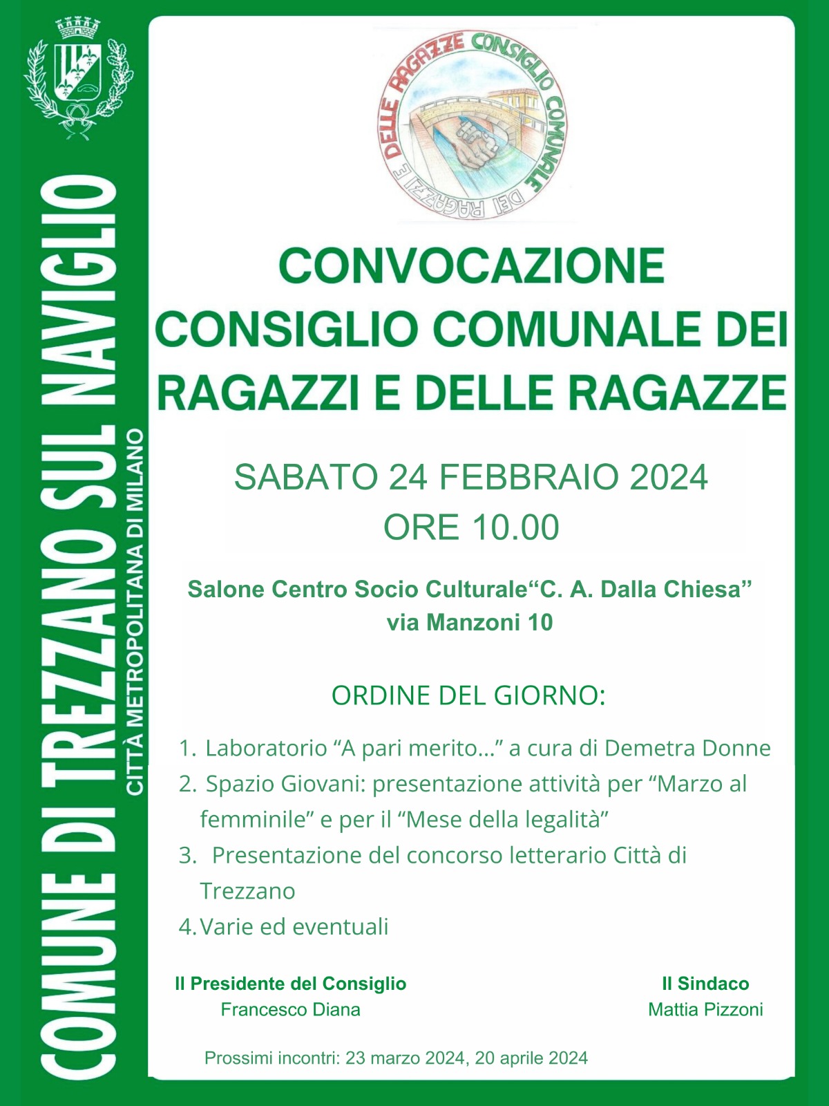 CONVOCAZIONE CONSIGLIO COMUNALE DEI RAGAZZI E DELLE RAGAZZE