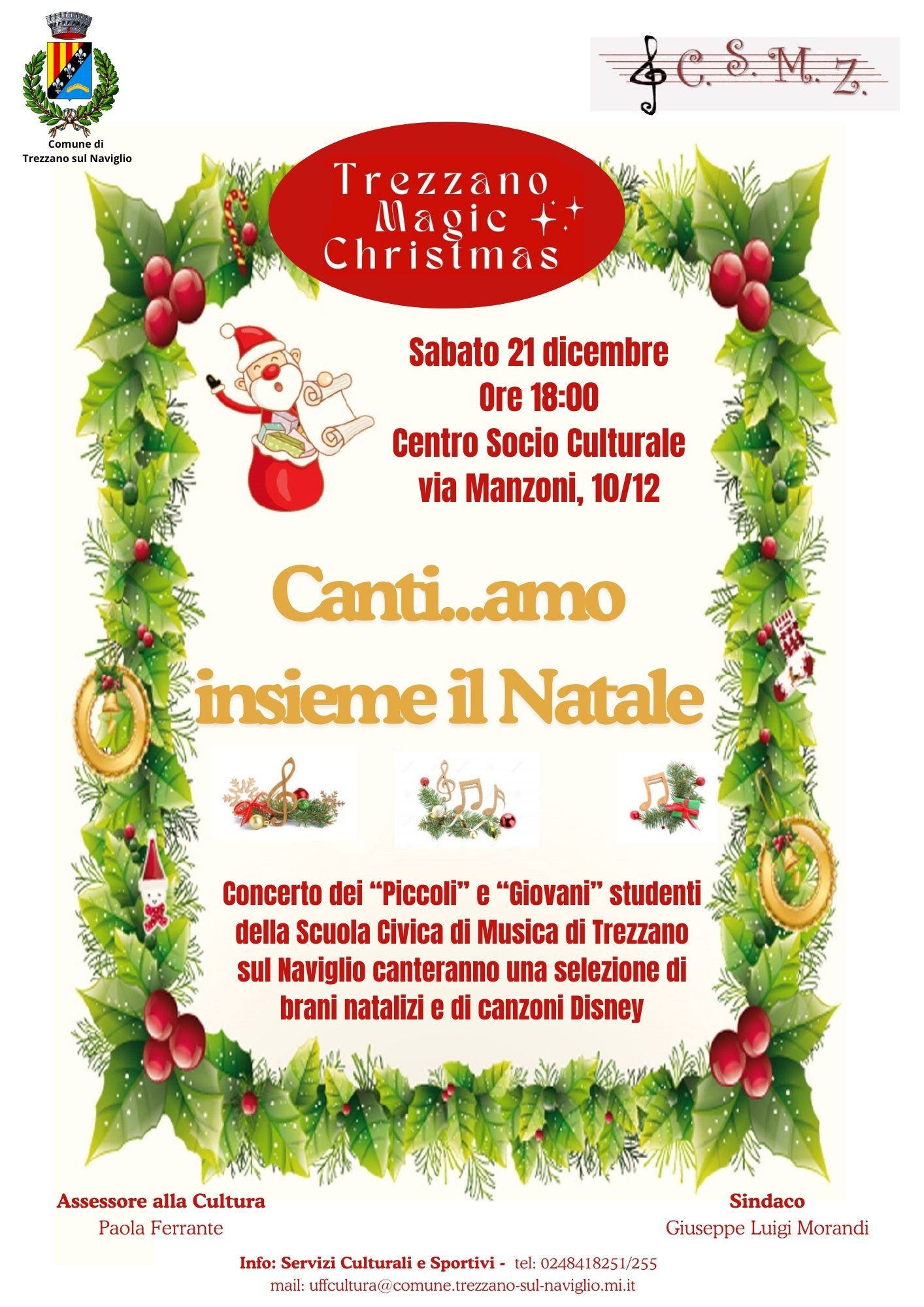Concerto dei "Piccoli" e "Giovani" studenti della Scuola Civica di Musica di Trezzano sul Naviglio - sabato 21 dicembre alle ore 18:00 presso il Centro Socio Culturale, via Manzoni 10
