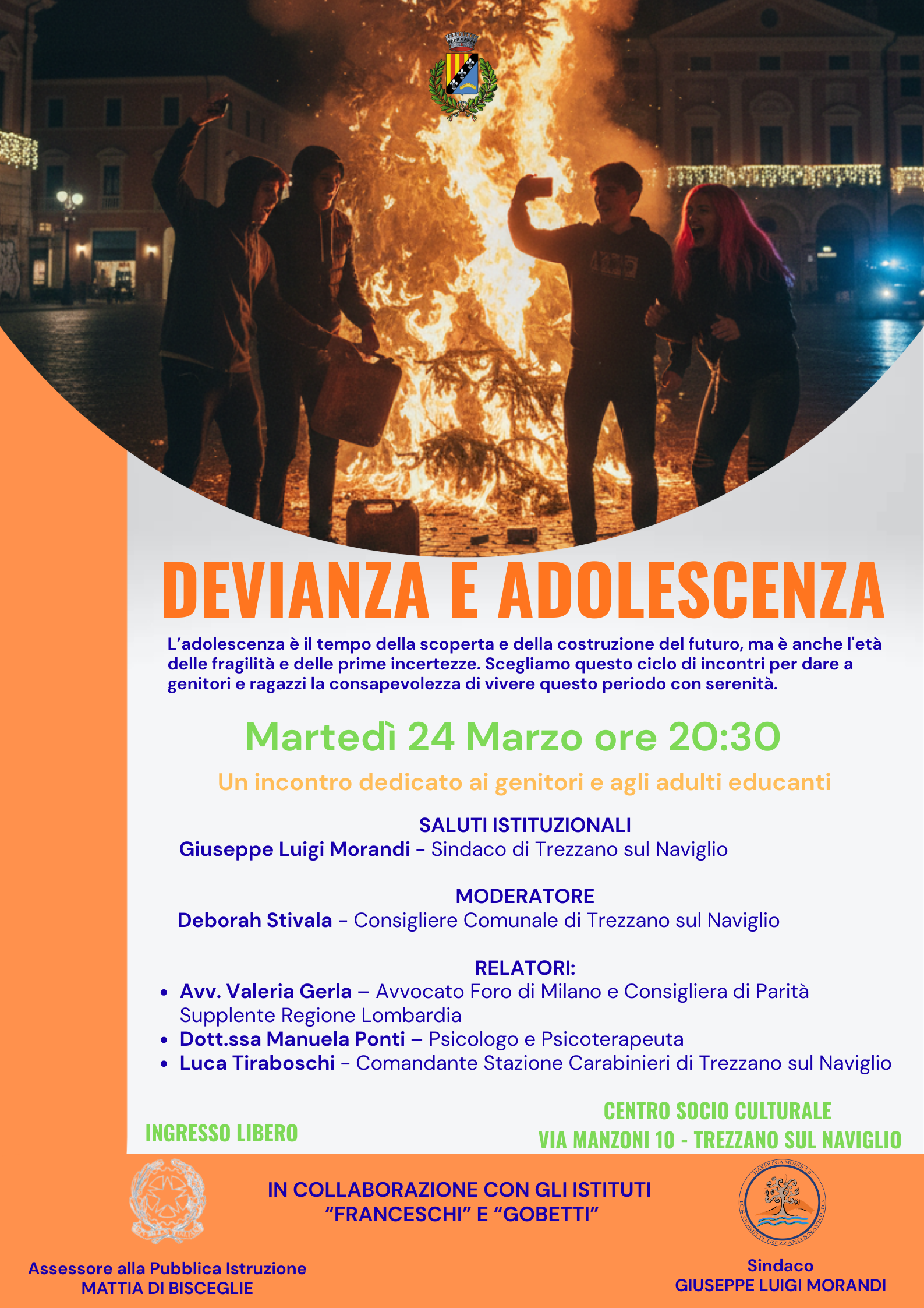 Incontro dedicato a genitori, insegnanti ed educatori sul tema adolescenza e devianza