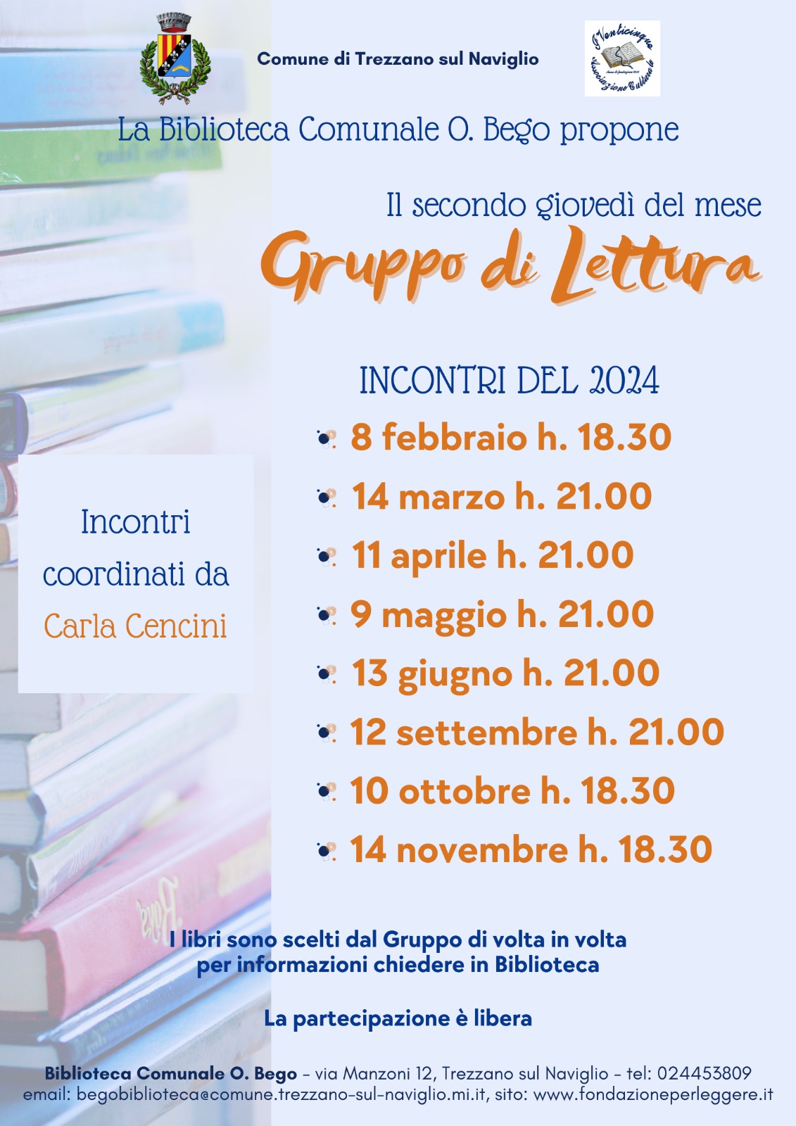 Tutti gli incontri si svolgono presso la Biblioteca O. Bego e sono coordinati da Carla Cencini.