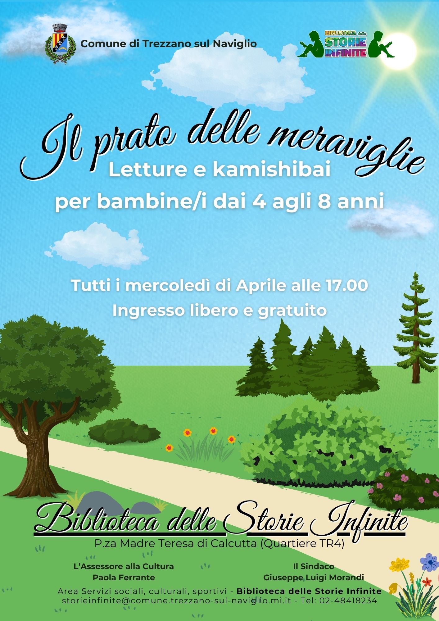 Luogo Biblioteca delle storie infinite Palazzina moderna Biblioteca delle Storie Infinite, Piazza Madre Teresa di Calcutta, Quartiere TR4, Trezzano sul Naviglio, Milano, Lombardia, Italia Orari al pubblico: Biblioteca delle Storie Infinite Periodo di chiusura Martedì e venerdì dalle 9.30 alle 12.30: apertura solo per le scuole Lun14.30 - 18.00Mar14.00 - 18.00Mer14.30 - 18.00Ven14.00 - 18.00Sab 9.30 - 12.30 Valido dal 01/01/2021