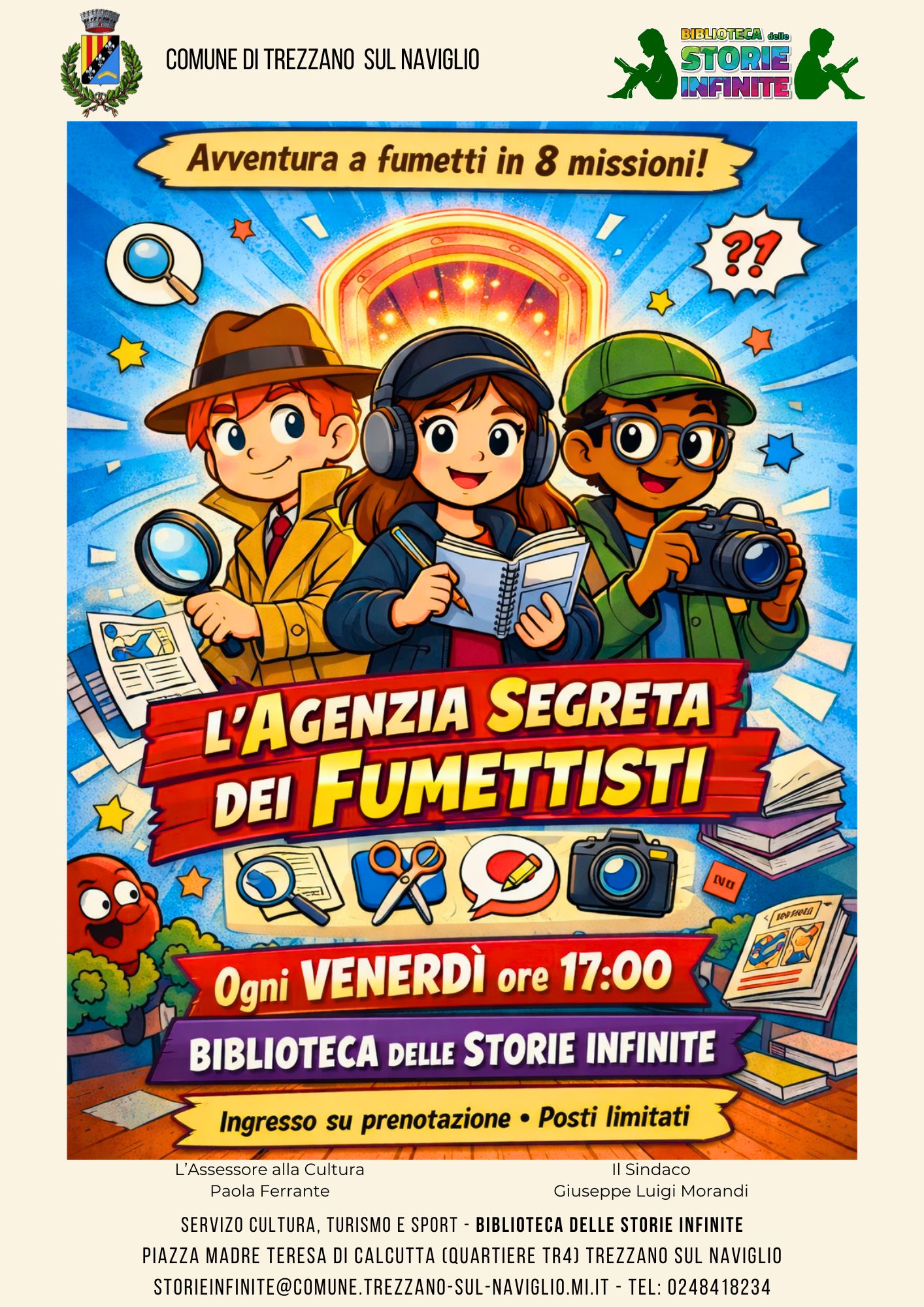 Un ciclo di missioni a fumetti per bambine e bambini dagli 8 agli 11 anni: storie segrete, personaggi misteriosi, collage, parole e immagini da combinare come veri agenti creativi