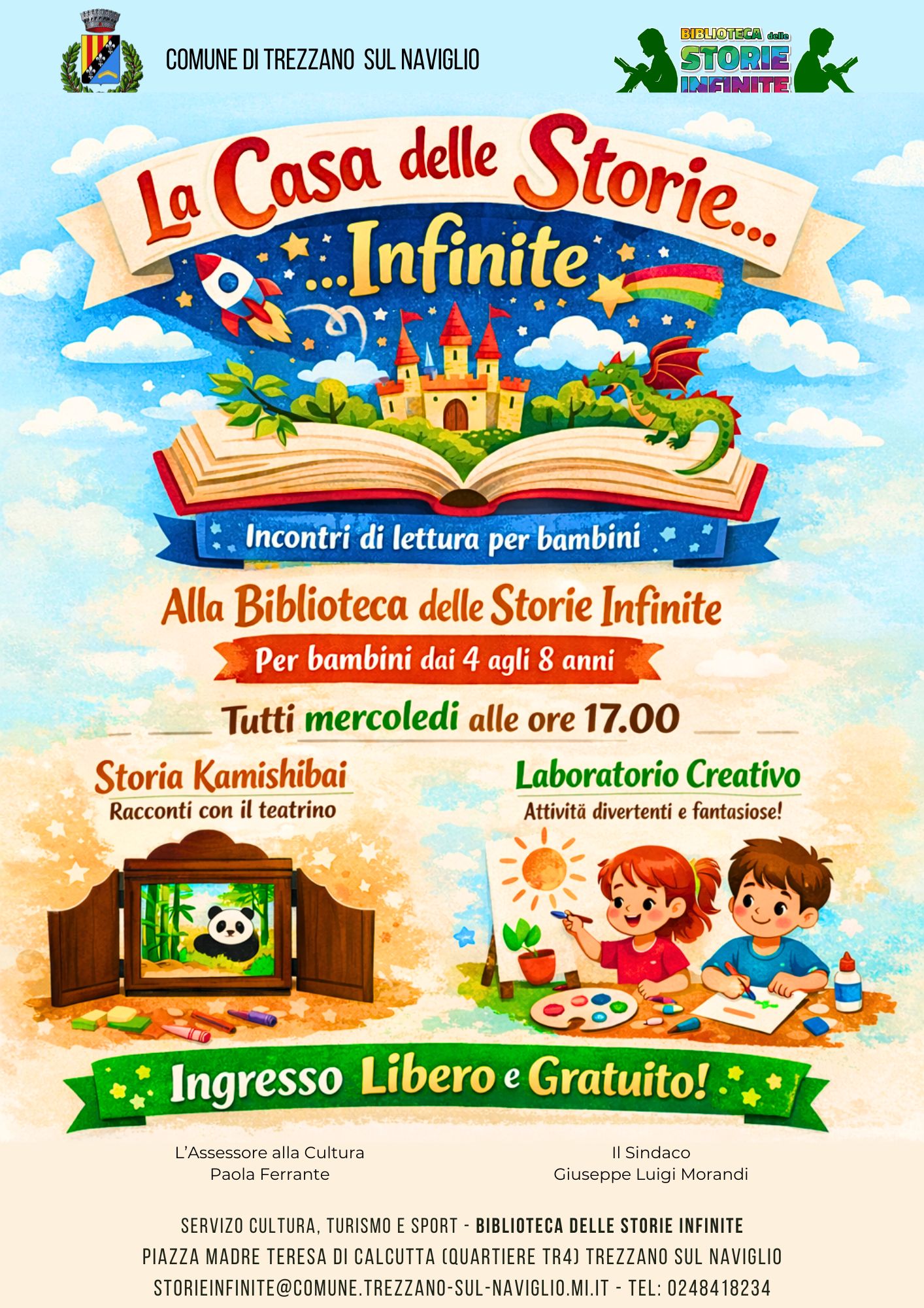 Luogo Biblioteca delle storie infinite Palazzina moderna Biblioteca delle Storie Infinite, Piazza Madre Teresa di Calcutta, Quartiere TR4, Trezzano sul Naviglio, Milano, Lombardia, Italia Orari al pubblico: Biblioteca delle Storie Infinite Periodo di chiusura Martedì e venerdì dalle 9.30 alle 12.30: apertura solo per le scuole Lun14.30 - 18.00Mar14.00 - 18.00Mer14.30 - 18.00Ven14.00 - 18.00Sab 9.30 - 12.30 Valido dal 01/01/2021