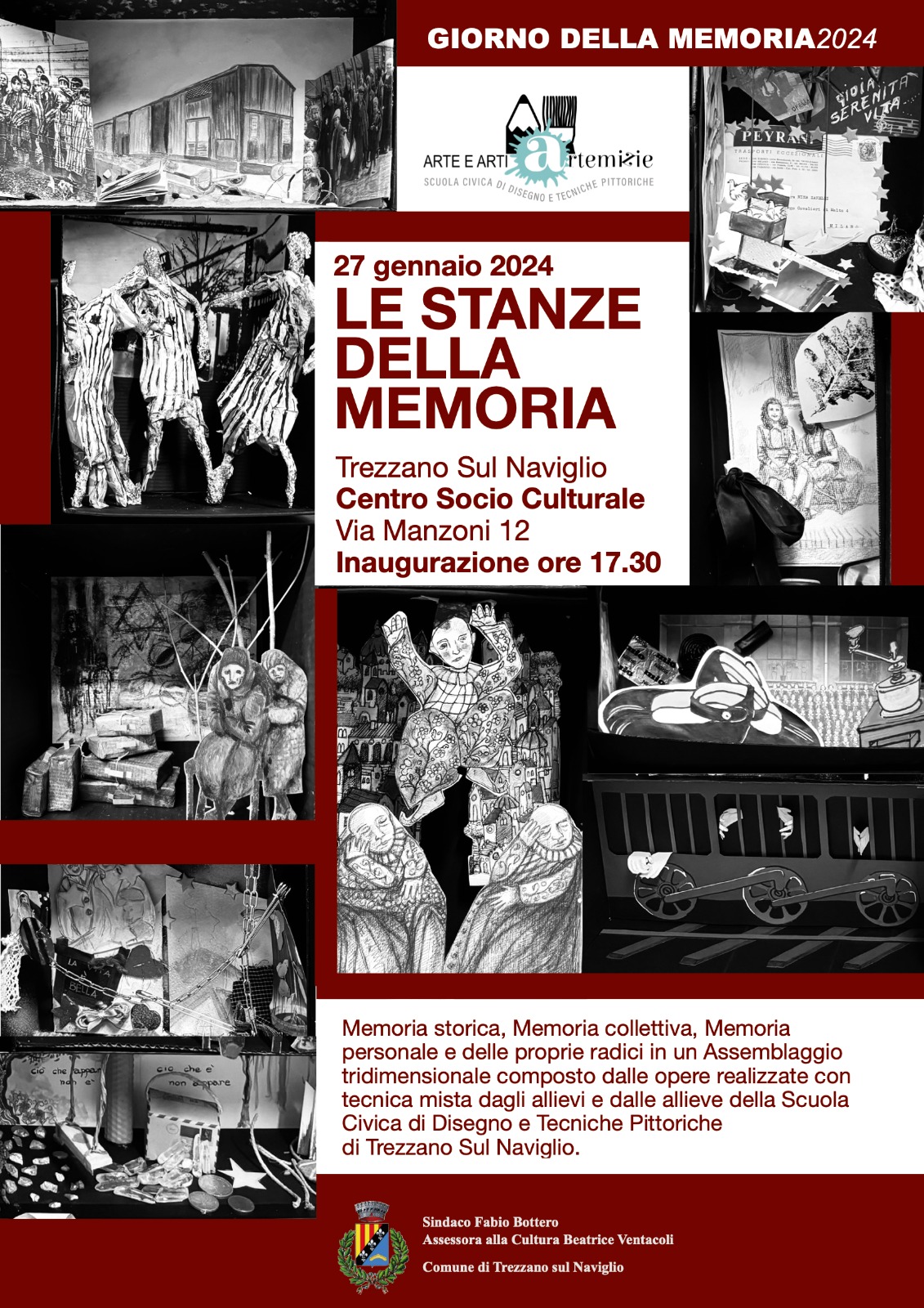 Memoria storica, memoria collettiva, memoria personale e delle proprie radici in un Assemblaggio tridimensionale composto dalle opere realizzate con tecnica mista dagli allievi e dalle allieve della Scuola Civica di Disegno e Tecniche Pittoriche di Trezzano sul Naviglio.