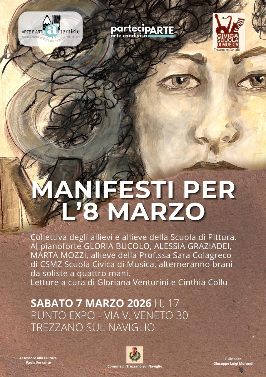 Collettiva degli allievi e delle allieve della Scuola Civica di Pittura "Arte & Arti & Artemizie" con accompagnamento musicale delle allieve Gloria Bucolo, Alessia Graziadei e Marta Mozzi della Prof.ssa Colagreco della Scuola Civica di Musica di Trezzano e letture a cura di Gloriana Venturini e Cinthia Collu.