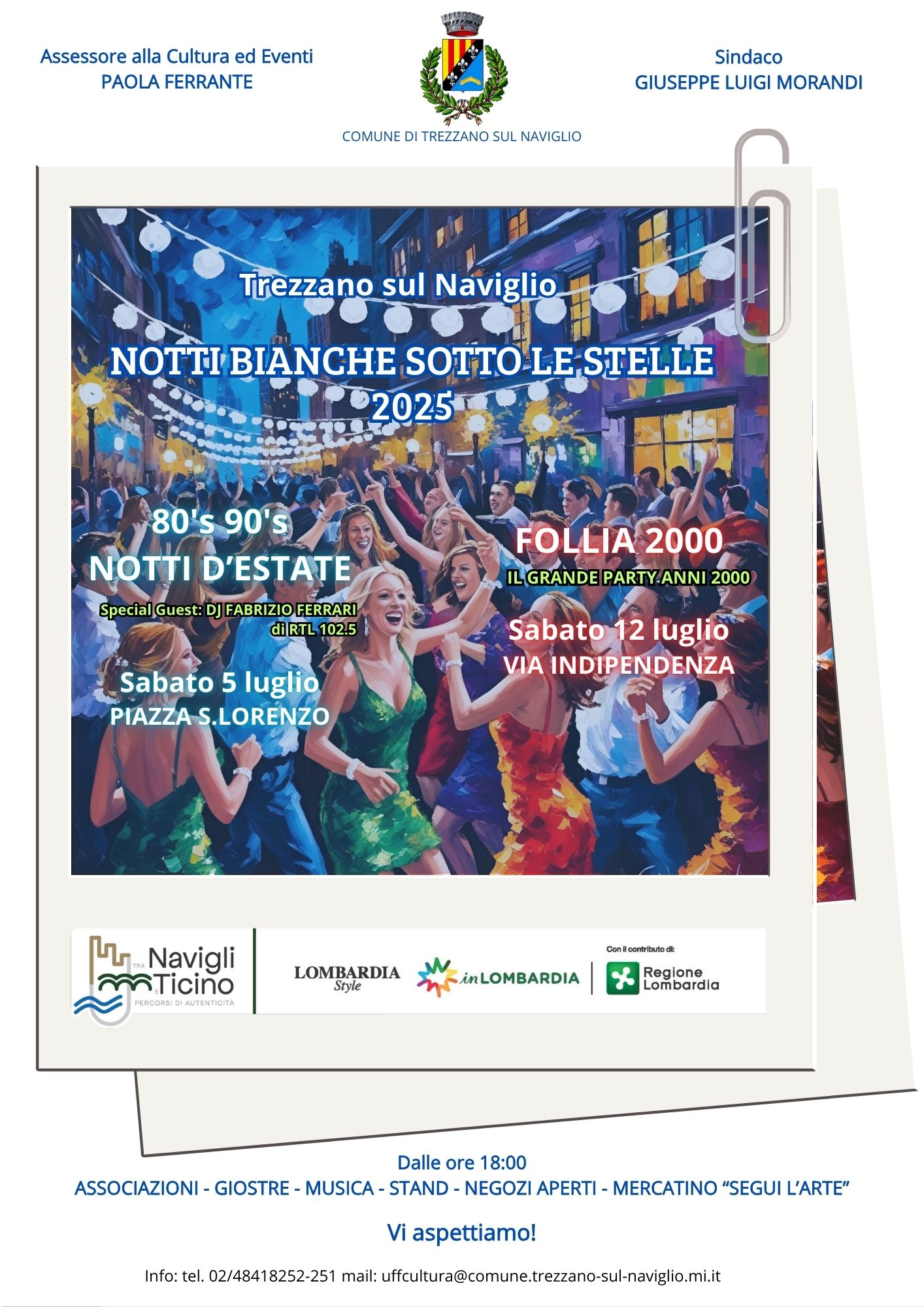 - sabato 5 luglio "80's 90's - Notti d'estate" special guest: DJ Fabrizio Ferrari di RTL 102.5 - Piazza S.Lorenzo