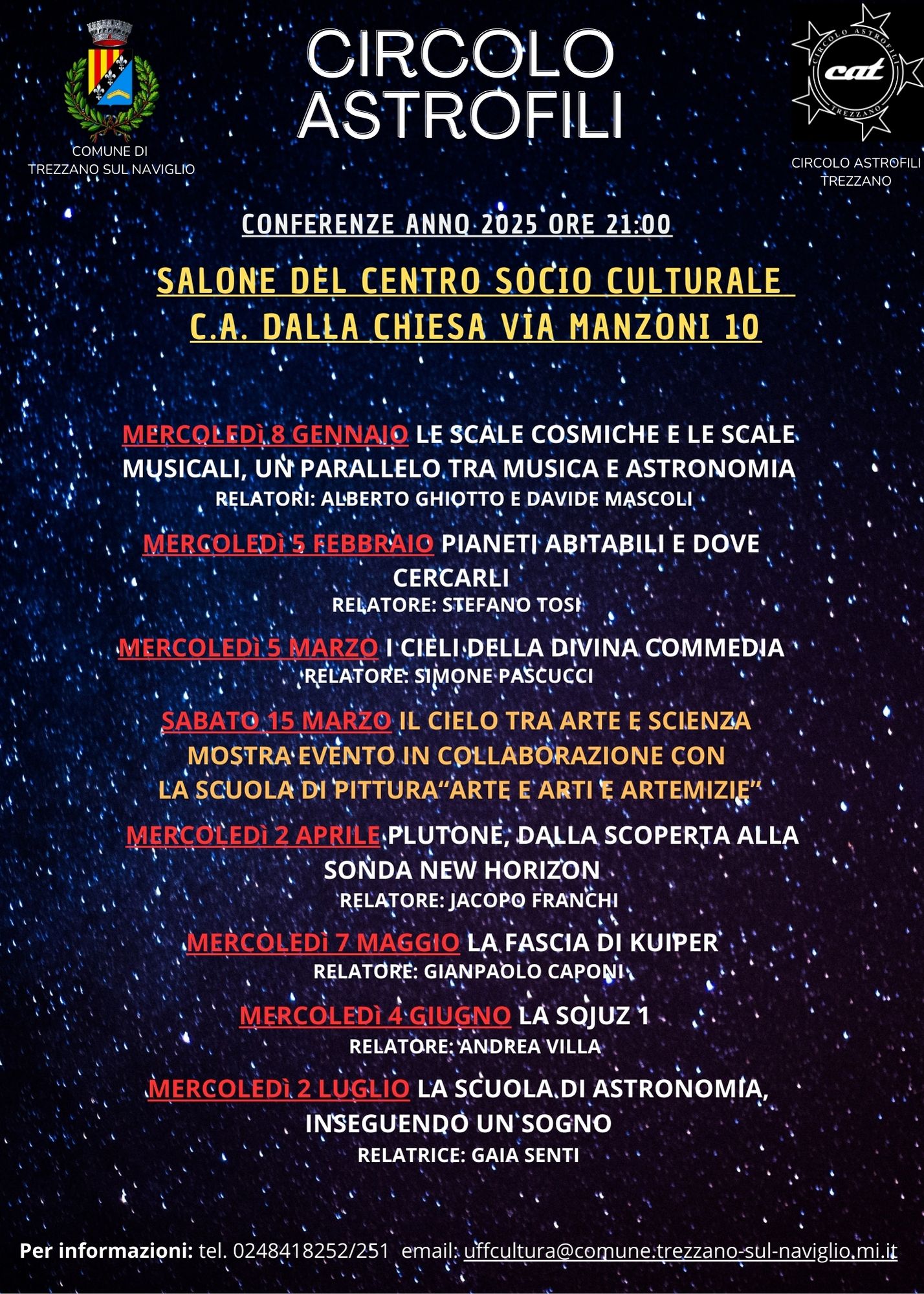 Luogo Centro Socio-Culturale "Carlo Alberto dalla Chiesa" Auditorium Centro Socio Culturale, Via Alessandro Manzoni 10 20090 Trezzano sul Naviglio