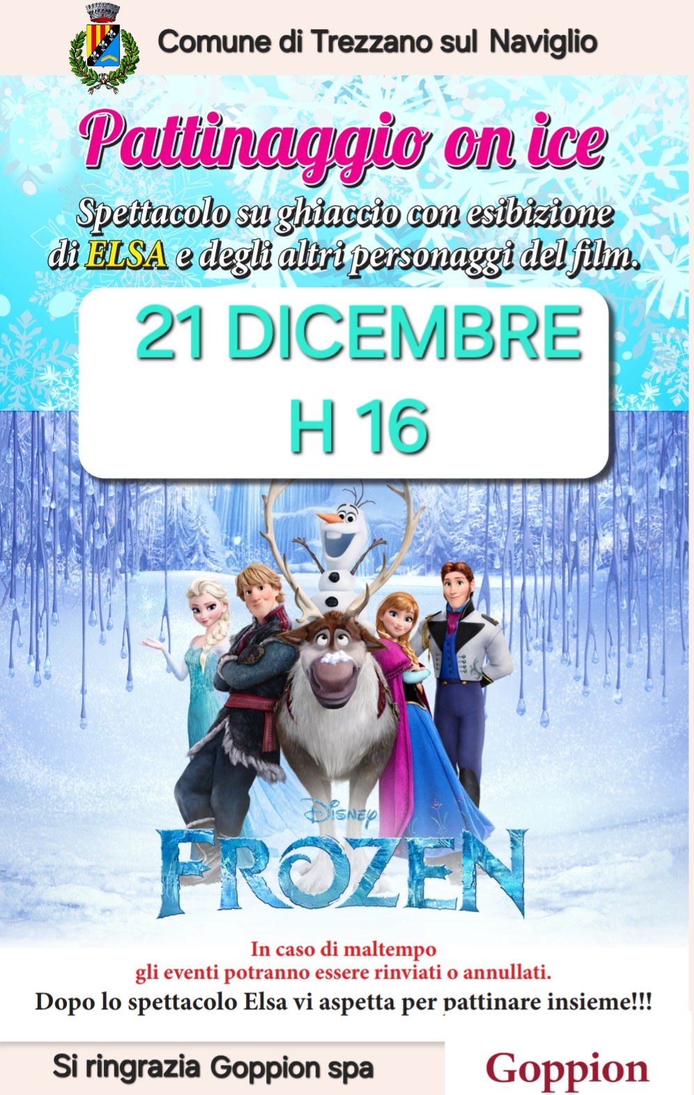 Spettacolo su ghiaccio con esibizione dei personaggi del celebre film Disney "Frozen"