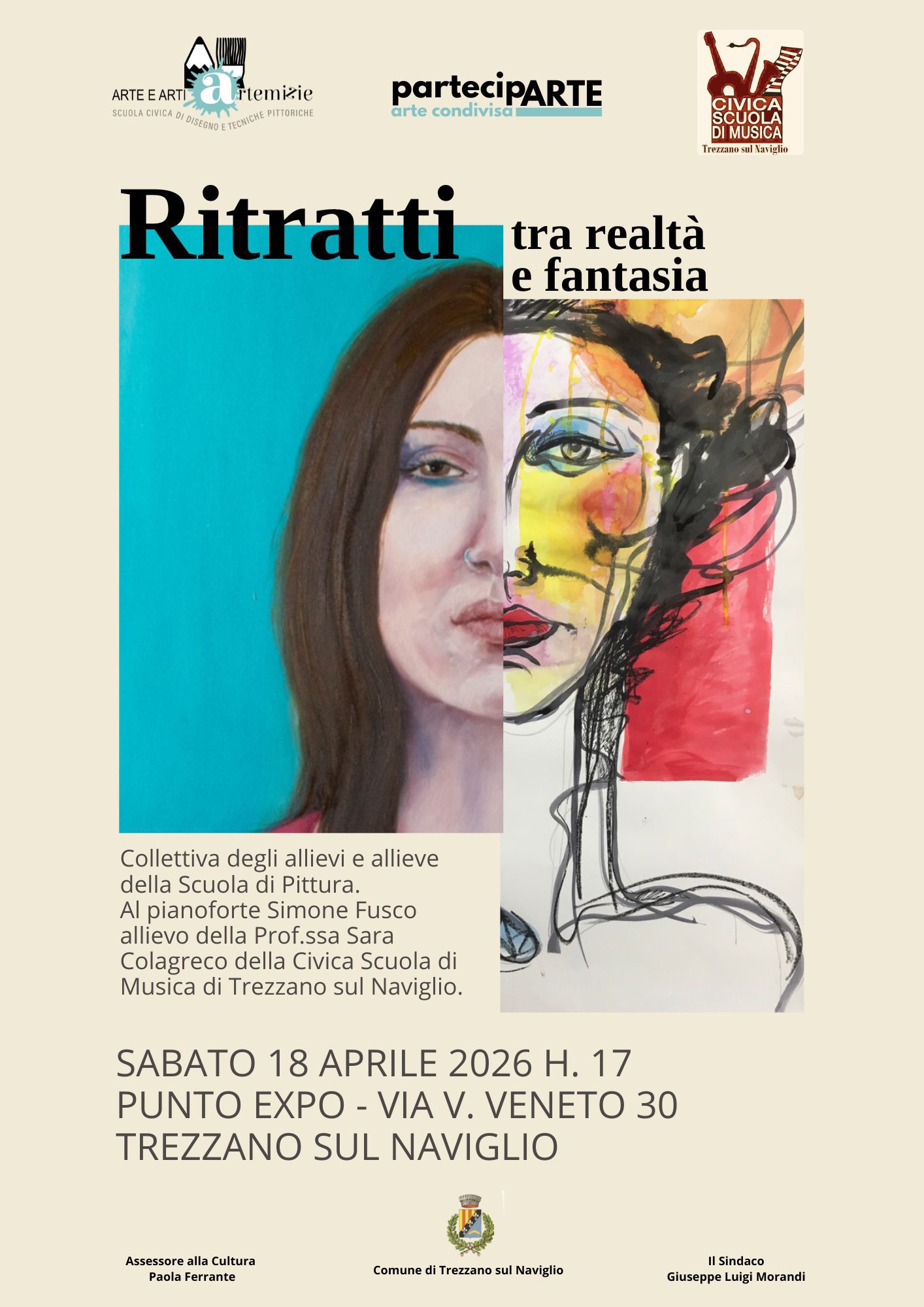 Collettiva degli allievi della Scuola Civica di Pittura "Arte & Arti & Artemizie", con accompagnamento musicale di Simone Fusco, allievo della Prof.ssa Colagreco della Scuola Civica di Musica di Trezzano