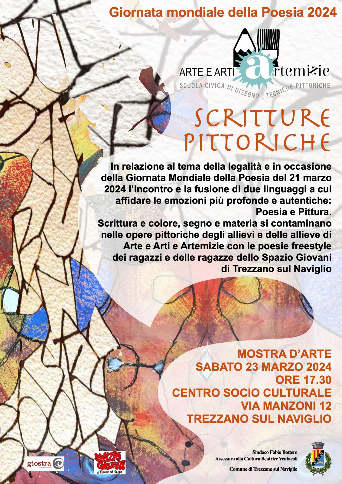 Scrittura e colore, segno e materia si contaminano nelle opere pittoriche degli allievi e delle allieve di Arte e Arti e Artemizie con le poesie freestyle dei ragazzi e delle ragazze dello Spazio Giovani di Trezzano sul Naviglio.